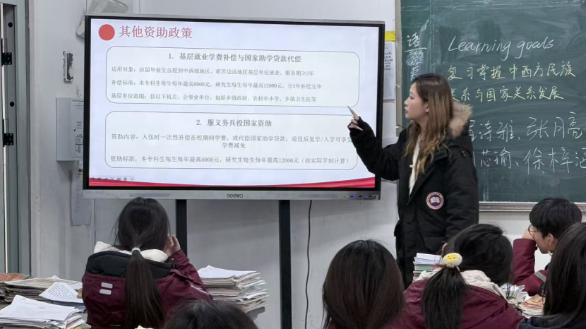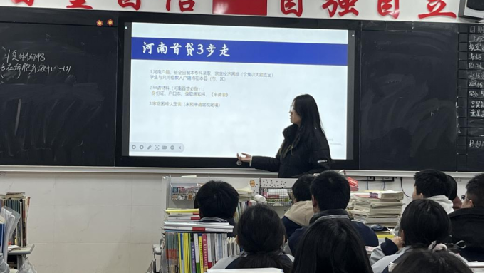 其次,走进初高中,对新生入学绿色通道、学费减免、国家奖助学金、助学贷款等相关政策进行简要介绍,帮助中学生了解国家多样化资助渠道,切实感受到政策的覆盖广泛与暖心关怀。